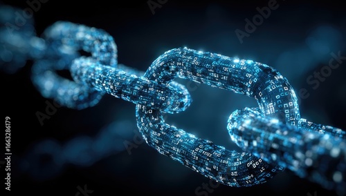Glowing digital chain links, representing data security and blockchain technology