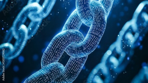 Glowing Digital Chain Secure Data Network Blockchain Technology