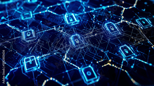 Glowing digital encryption layers safeguarding critical networks, advanced cyber defense