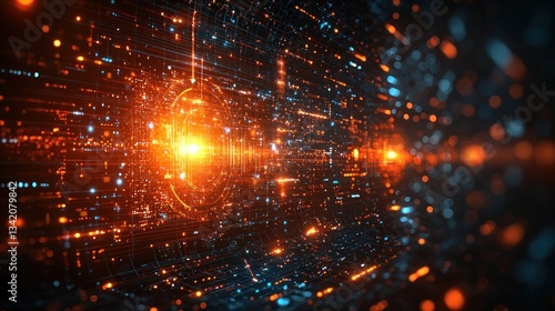 Glowing digital futuristic network with data transfer and movement