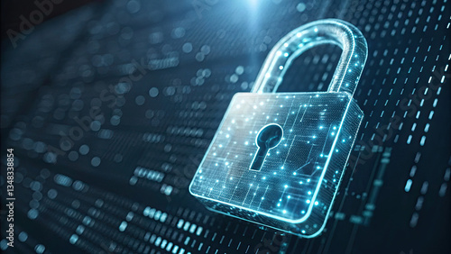 Glowing digital lock symbolizing AI copyright protection with binary code, representing cybersecurity, data privacy, and intellectual property concepts in modern technology.