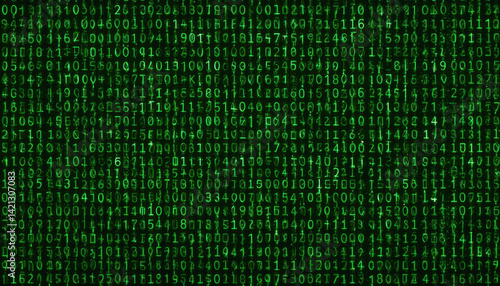 Glowing Digital Numbers Flowing Down Dark Screen