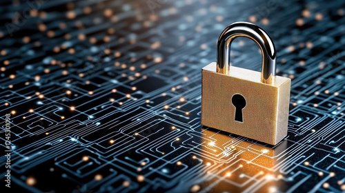 glowing digital padlock symbolizes security over network