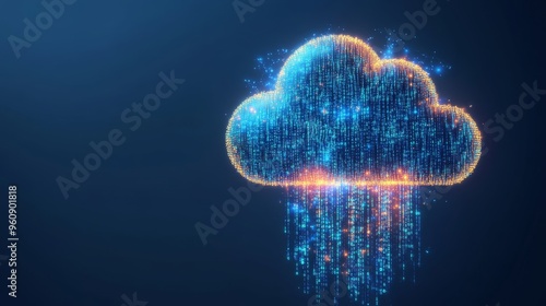 Glowing Encrypted Data Streams Flowing into a Cloud Icon