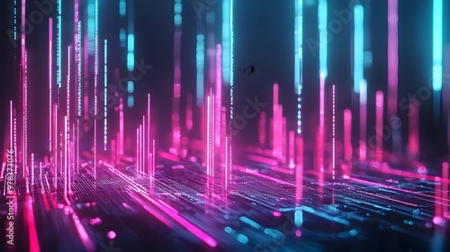 Glowing Futuristic Abstract Data Visualization with Neon Lines and Digital Background