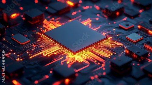 Glowing Futuristic Microchip Embedded in Advanced Technological Device