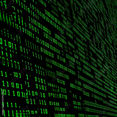 Glowing Green Binary Code Fills a Dark Screen, Representing Digital Data or Programming Concepts.