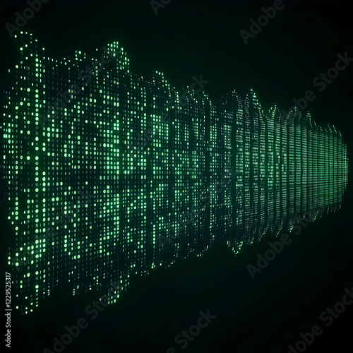 Glowing Green Binary Code Stream Flows Dynamically in Abstract Digital Space