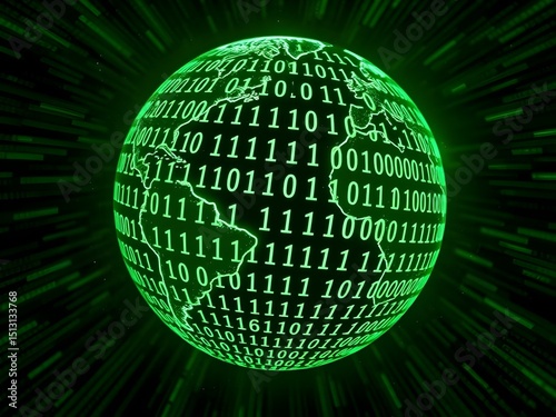Glowing Green Globe with Binary Code and Light Rays — Digital Technology Theme