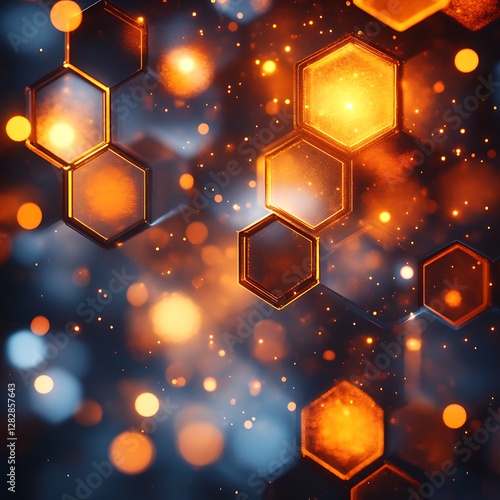 Glowing Hexagons with Abstract Particle Background