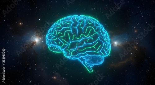 Glowing Human Brain Outline in Space Representing Intelligence and Knowledge