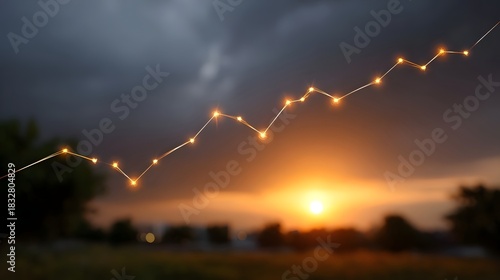 Glowing line graph charting upward progress against a dramatic sunset sky