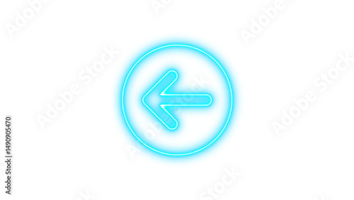 Glowing Neon Arrow in Circle, Neon circle arrow left icon glow with transparent background