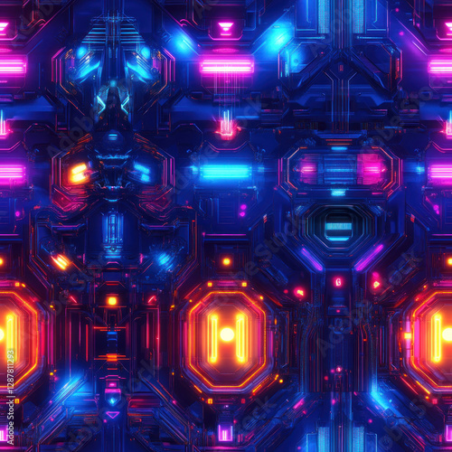 Glowing Neon Circuits Complex Futuristic Wall Texture with Geometric Patterns and Vibrant Lighting
