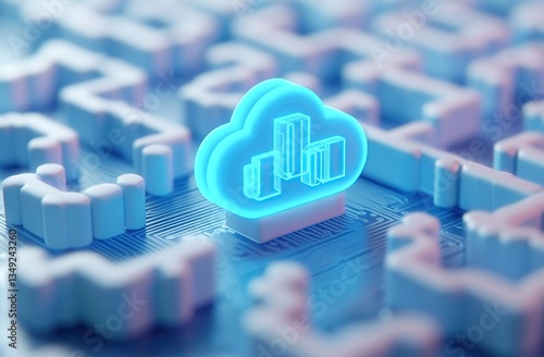 Glowing Neon Cloud Computing Icon on Circuit Board