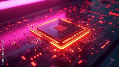 Glowing Neon Computer Chip Circuit Board for Advanced Technology Concepts