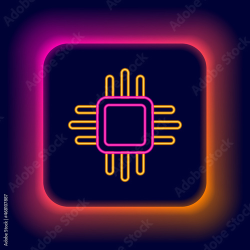 Glowing neon line Computer processor with microcircuits CPU icon isolated on black background. Chip or cpu with circuit board. Micro processor. Colorful outline concept. Vector
