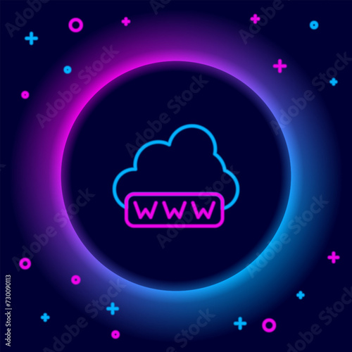 Glowing neon line Software, web development, programming concept icon isolated on black background. Programming language and program code on screen laptop. Colorful outline concept. Vector