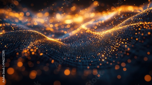 Glowing network connections forming a web, abstract design, ample space for copy