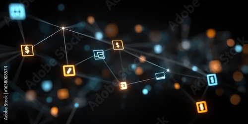 glowing network digital finance icons