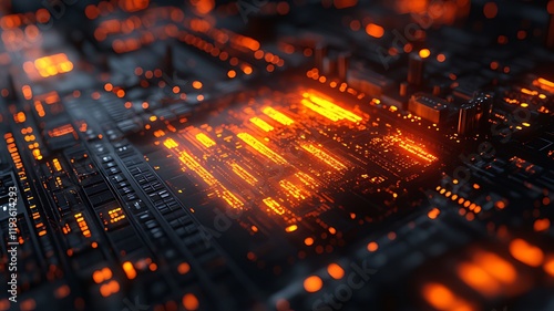 Glowing orange circuits on a dark tech board.