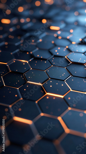 Glowing orange hexagonal pattern displaying technological digital abstract design