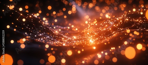 Glowing orange particles flow, creating a dynamic, abstract wave pattern