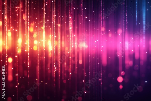 Glowing particles falling from top creating colorful vertical lines with bokeh effect