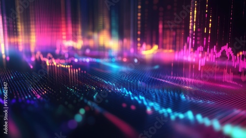Glowing Screen Displaying Colorful Audio Waveforms, Symbolizing Advanced Sound Analysis and Technology