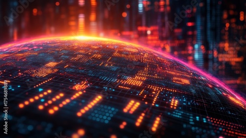 Glowing sphere with circuit patterns and vibrant colorscape