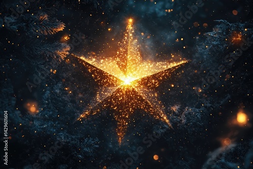 Glowing Star in Winter Forest - Magical Christmas Image