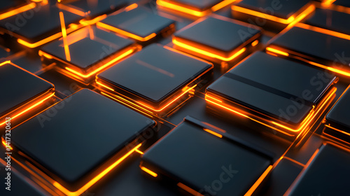 Glowing Tech Grid: An abstract view of a tech grid, rendered with an illuminated neon edge design, the scene radiates futurism and digital sophistication.