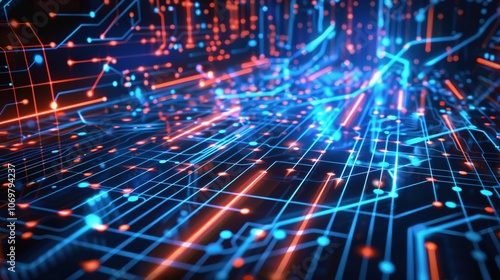 Glowing Technology Grid Lines - a modern and futuristic visual. The glowing grid lines against the black background create a sleek and engaging scene.