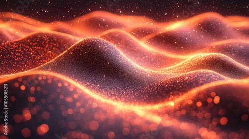 Glowing waves of red and orange light ripple across a dark background, creating a mesmerizing visual effect at twilight hours
