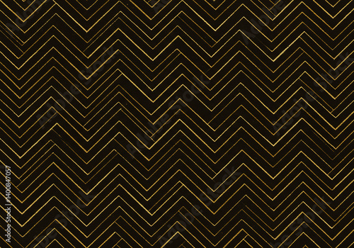 Gold Glitter Chevron Pattern on Black Background