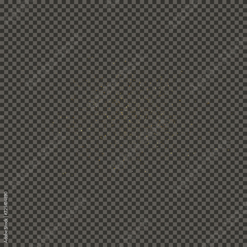 Gold glittering dust on transparent backdrop