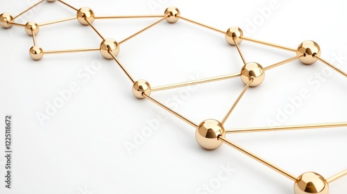 Gold Metallic Network Structure with Connecting Lines on a Clean White Background