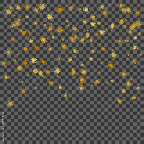 Gold star isolated on transparent background. Confetti celebration, Falling golden abstract decoration for party, birthday celebrate, anniversary or event, festive. Festival decor. Vector illustration