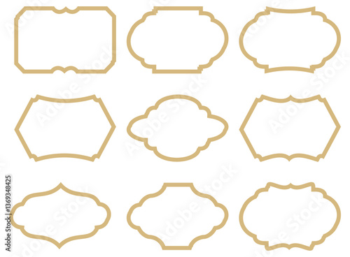 Gold traditional islamic architecture frames, vector illustration.