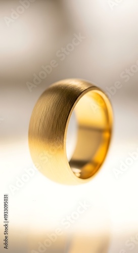 Gold Wedding Ring Floating on White Background.