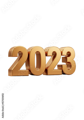 Golden 2023 New Year Celebration Number 3D Render Transparent Background