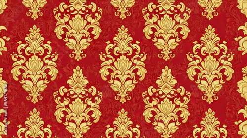 Golden Baroque Pattern on Red Background, Red , Baroque , Background
