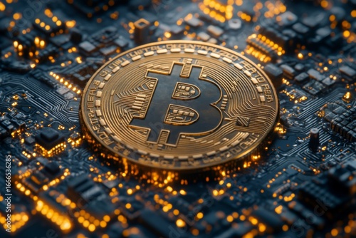 Golden Bitcoin On Digital Circuitry