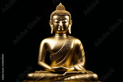 Golden Buddha statue in a black background, generative AI