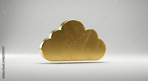 Golden Cloud Symbol on White Background Digital Computing Concept