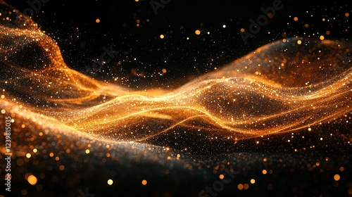 Golden Glitter Waves Flowing Dark Background