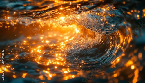 Golden Hour Ocean Waves Sparkling With Light Abstract Image Liquid Surface