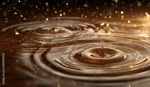 Golden liquid droplets creating ripples