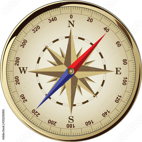 Golden magnetic compass device vector