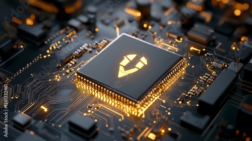 Golden Microchip: A 3D Render of Advanced Processor Technology AI Generated